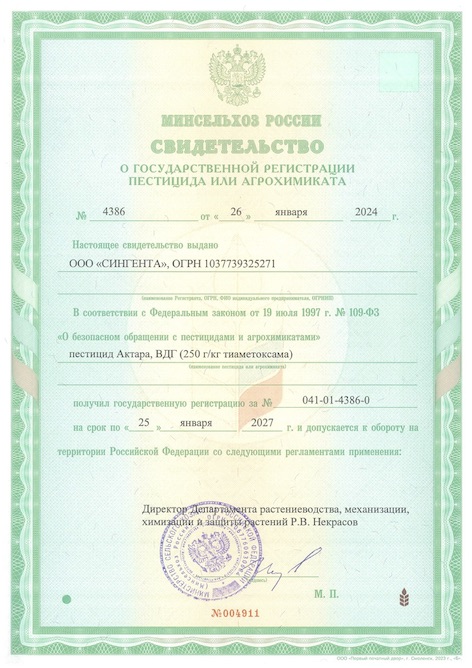 Мы используем только сертифицированные препараты, прошедшие государственную регистрацию. Вы можете ознакомиться с документами на инсектициды и фунгициды, которые применяют наши мастера.